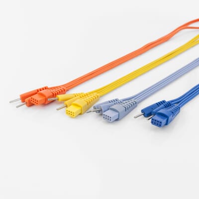 Les électrostimulateurs filaires nécessitent l'utilisation de câbles pour relier les électrodes. D'autres câbles bien spécifiques comme le mi-sensor de compex par exemple vont permettre de mesurer certaines caractéristiques physiologiques du muscle afin de s'adapter à chaque utilisateur. Ces câbles sont à snap ou à fils selon l'électrostimulateur utilisé. Compex et Bluetens présentent par exemple de nombreux câbles pour leurs différents appareils.
