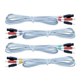 Les électrostimulateurs filaires nécessitent l'utilisation de câbles pour relier les électrodes. D'autres câbles bien spécifiques comme le mi-sensor de compex par exemple vont permettre de mesurer certaines caractéristiques physiologiques du muscle afin de s'adapter à chaque utilisateur. Ces câbles sont à snap ou à fils selon l'électrostimulateur utilisé. Compex et Bluetens présentent par exemple de nombreux câbles pour leurs différents appareils.